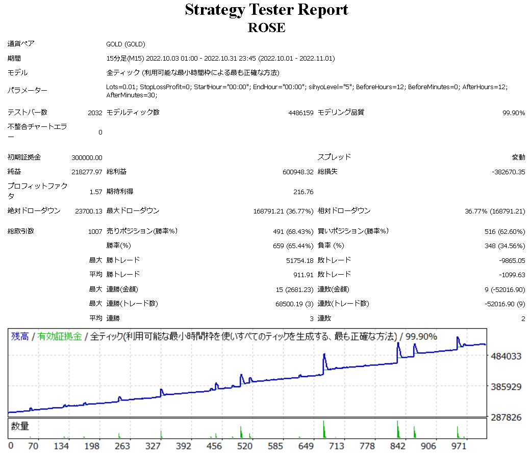 | バックテスト期間 | バックテスト期間 (2022年10月03日~2022年10月31日 |