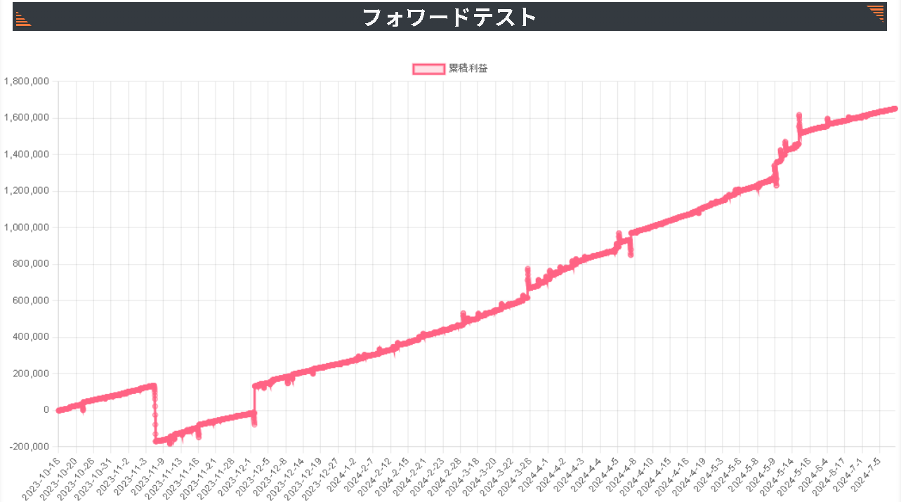 基本的に月利70%程度ですが、価格が逆行しているかぎり、倍々で大きなポジションになっていきます。