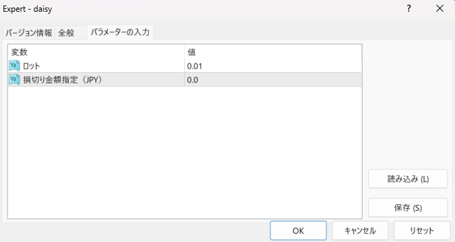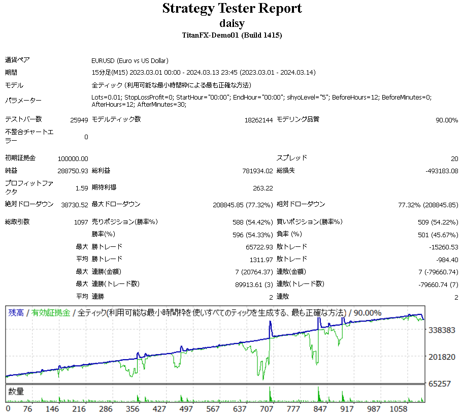 EURUSD相場の特性を考慮した最適化済みパラメーター